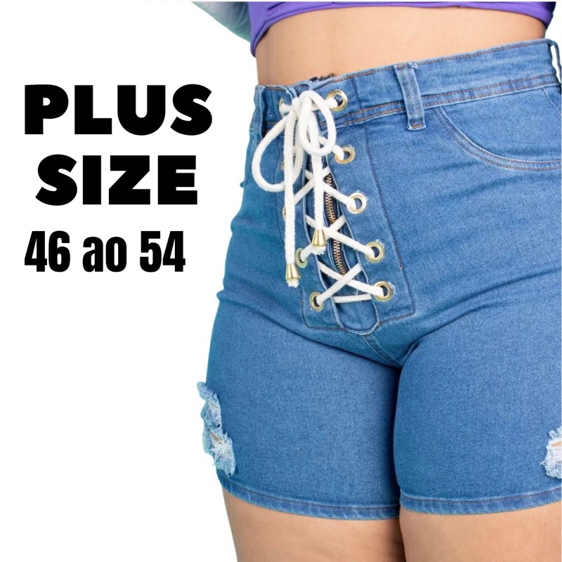 Short jeans PLUS SIZE feminino com lycra cintura alta hot pant
