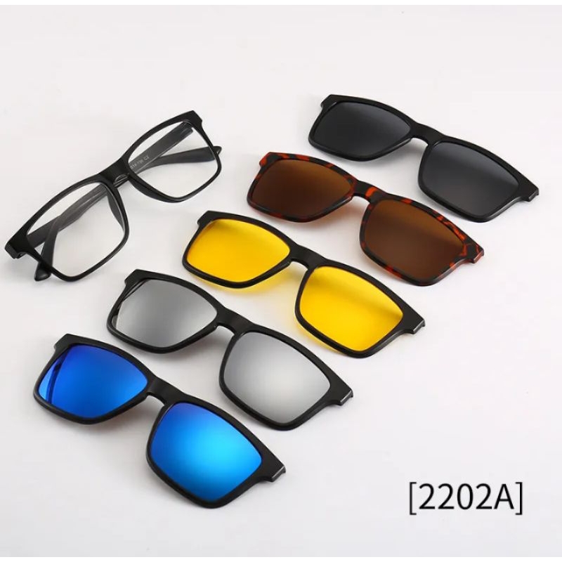 Clipon, 2202A óculos de sol magnéticos e armação de óculos ópticos, 6 em 1, polarizados ou visão noturna, óculos multi uso para homens e mulheres