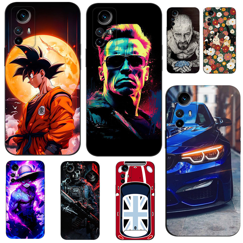 Para Xiaomi Redmi Note 12S 4G Capa Global De Celular Preta tpu anime Desenho Crânio De Carro Tigre