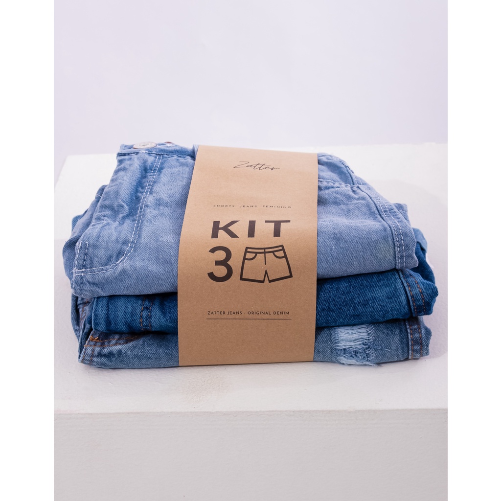 Kit Com 3 Shorts Jeans Feminino Cintura Alta Vários Modelos