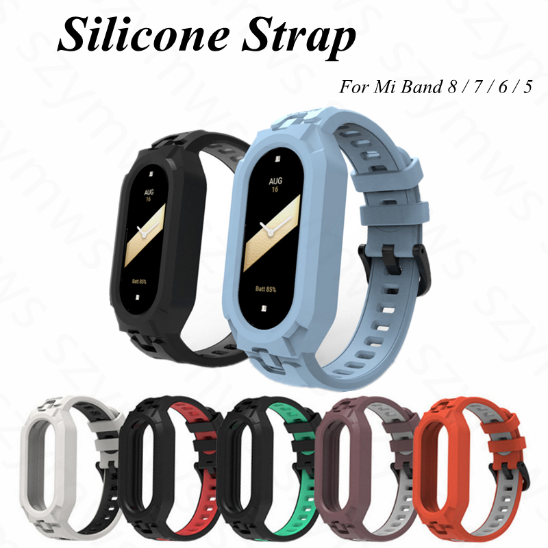 2 Em 1 Case + Strap Para Xiaomi Mi Band 8/7/6/5 Pulseira Esportiva De Silicone Band8 Substituição Smart WristBand