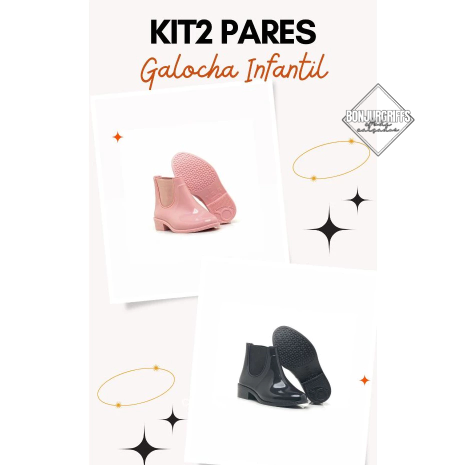 KIT2 Pares Bota Infantil Feminina De Chuva Galocha Injetada Impermeável