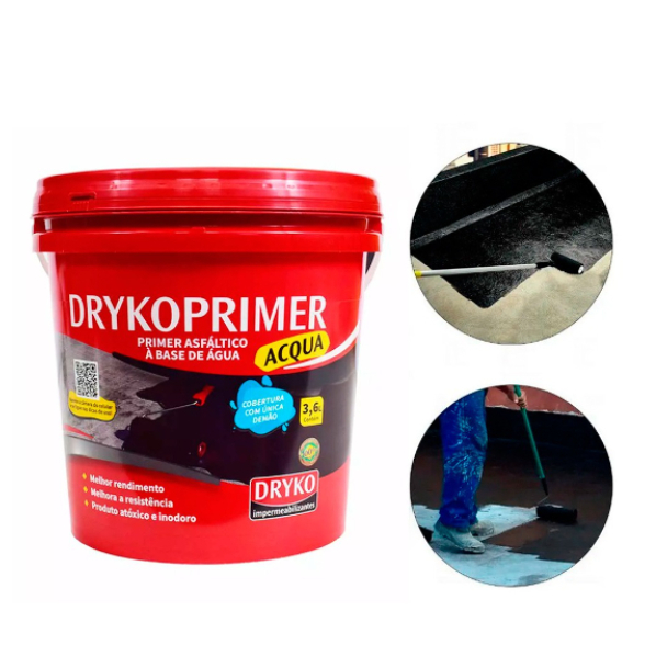 Primer Para Mantas BAse Água Dryko Primer Manta Liquida Asfáltico 3,6l Emulsão Asfáltica - DRYKO