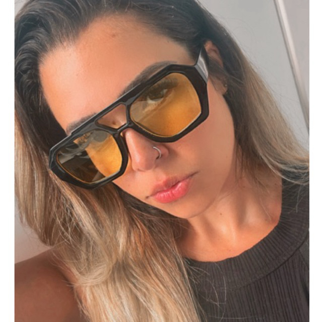 Óculos de Sol Lente Amarela Quadrado Estilo Retrô Vintage Oversized Masculino Feminino