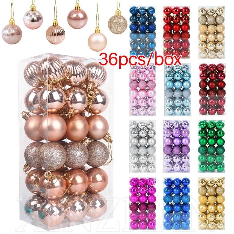 Decoração De Natal / 4cm 36 Pçs Bolas Coloridas De Natal Com Glitter Para Decoração De Árvore De Natal