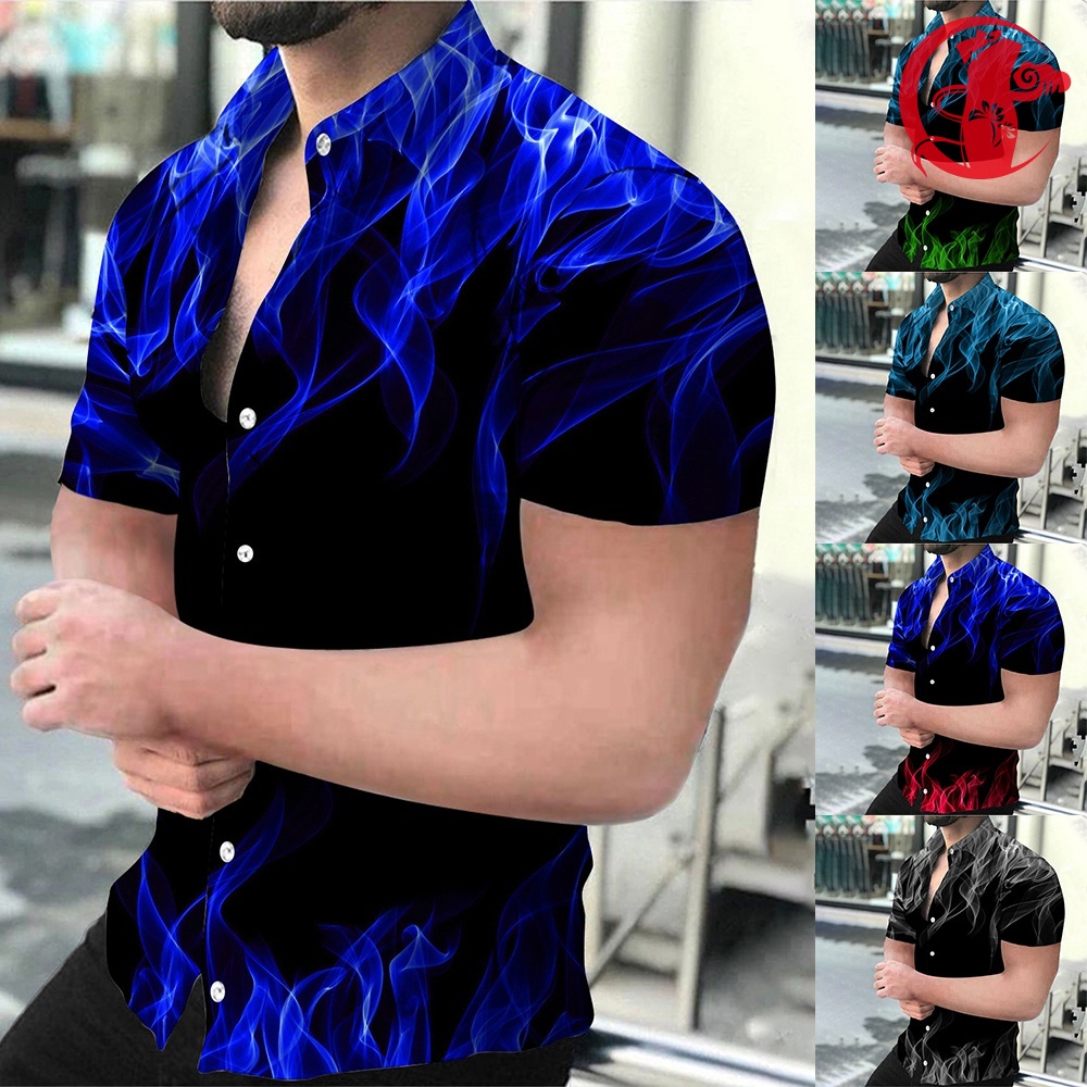 2023 Novo Estilo Gradiente Padrão de Chama Padrão de Chama para Homens Camisa de Manga Curta HD Impressão Digital Camiseta Top