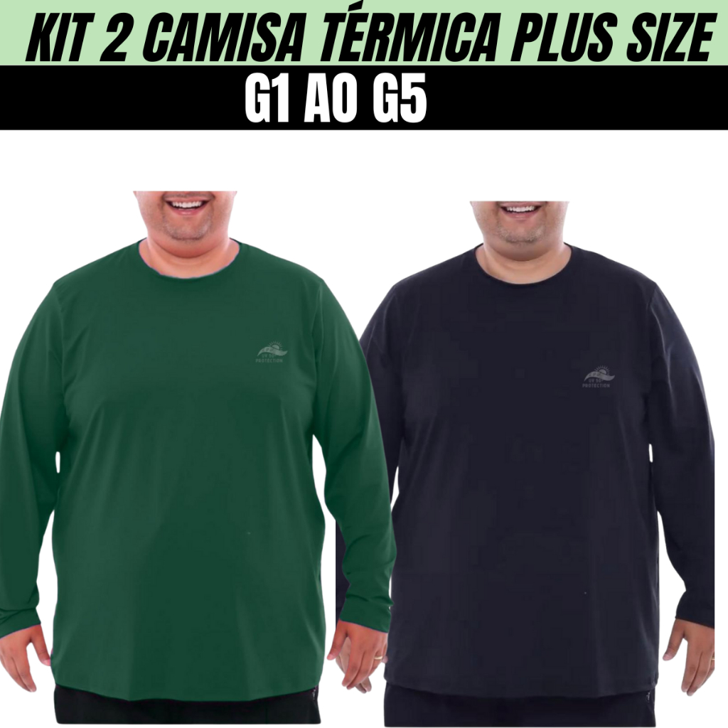 Kit 2 Camisa Proteção Solar Plus Size Unissex Segunda Pele UV 50+ Tamanho G1 G2 G3 G4 G5