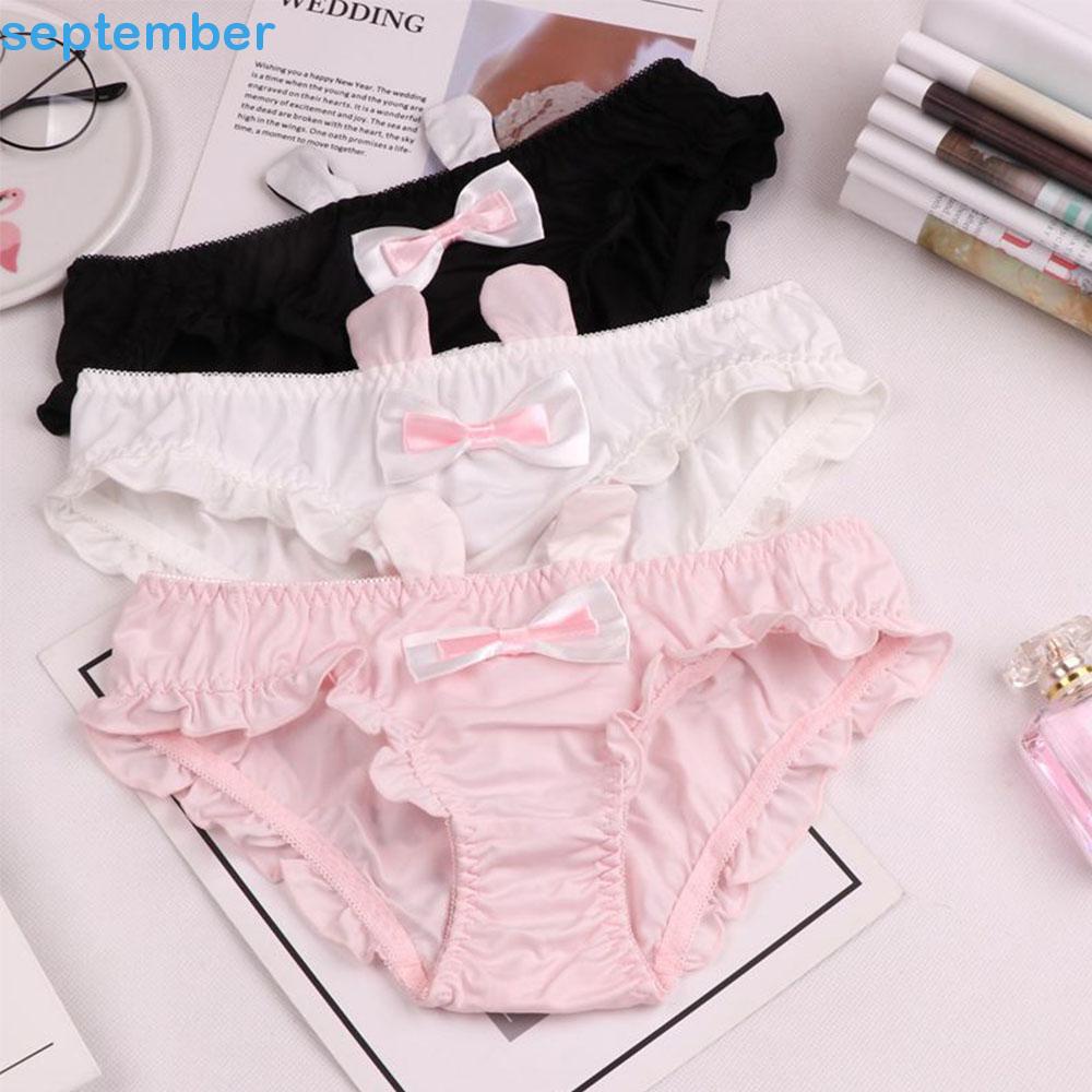 SEPTEMBER Calcinha De Seda Amarela Com Orelhas De Coelho / Laço Fofo / Lolita