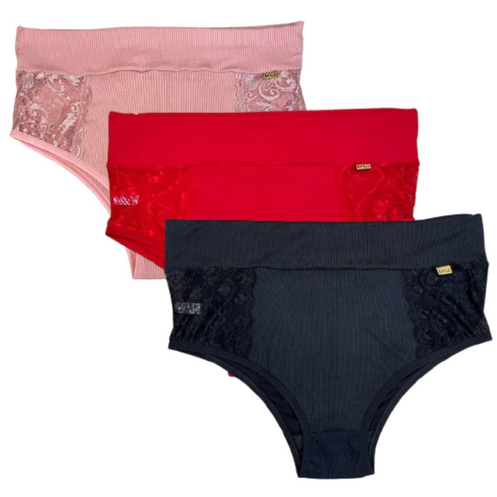 Kit 3 Calcinha Plus Size 50 ao 66 Confortável – Cintura Alta Lateral Larga para o Dia a Dia