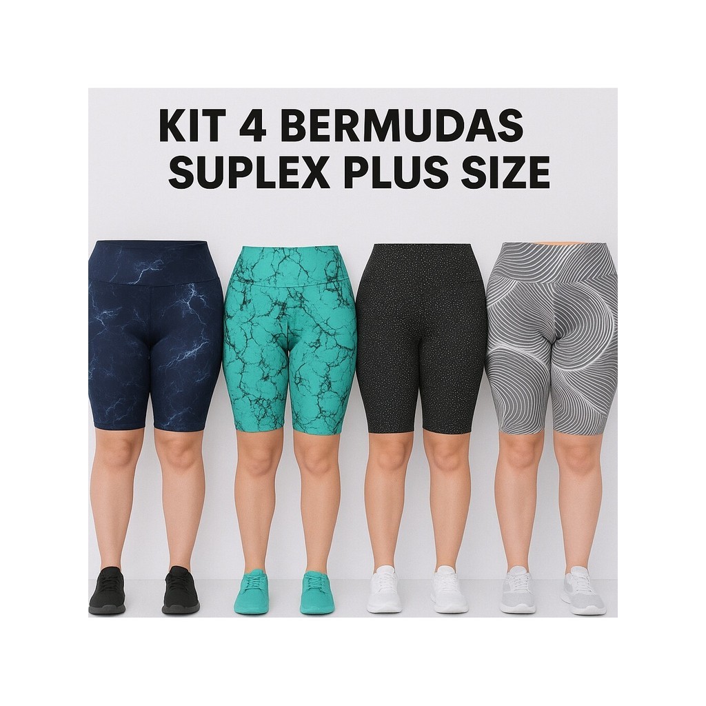 Kit 4 Bermudas Femininas Plus Size em Suplex | Cintura Alta G1 G2 G3 | Academia, CrossFit e Dia a Dia