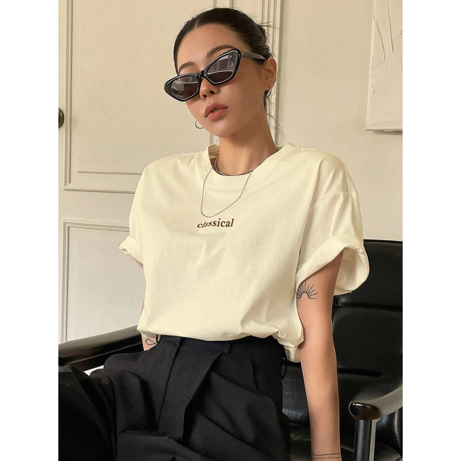 Camiseta Classical Estampa Bordado Grafico Palavra Classica Life Style Oversized Manga Curta Ombro Caido Aesthetic Feminino