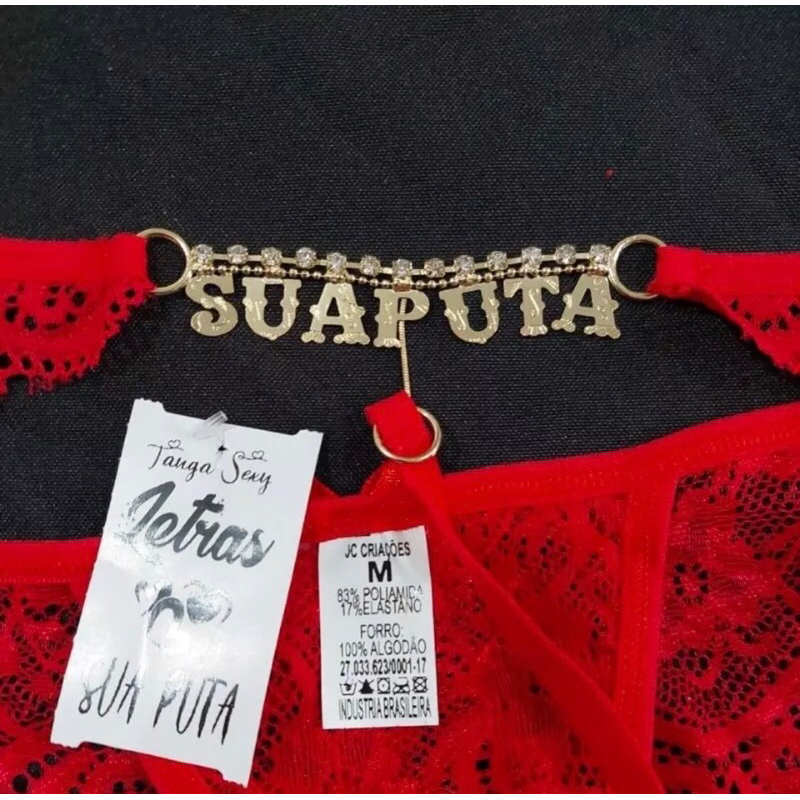 calcinha tanga regulável BELLA BIJU com frases sugestiva Fio de ouro dizeres provocantes sexy erotica sensual fio dental renda