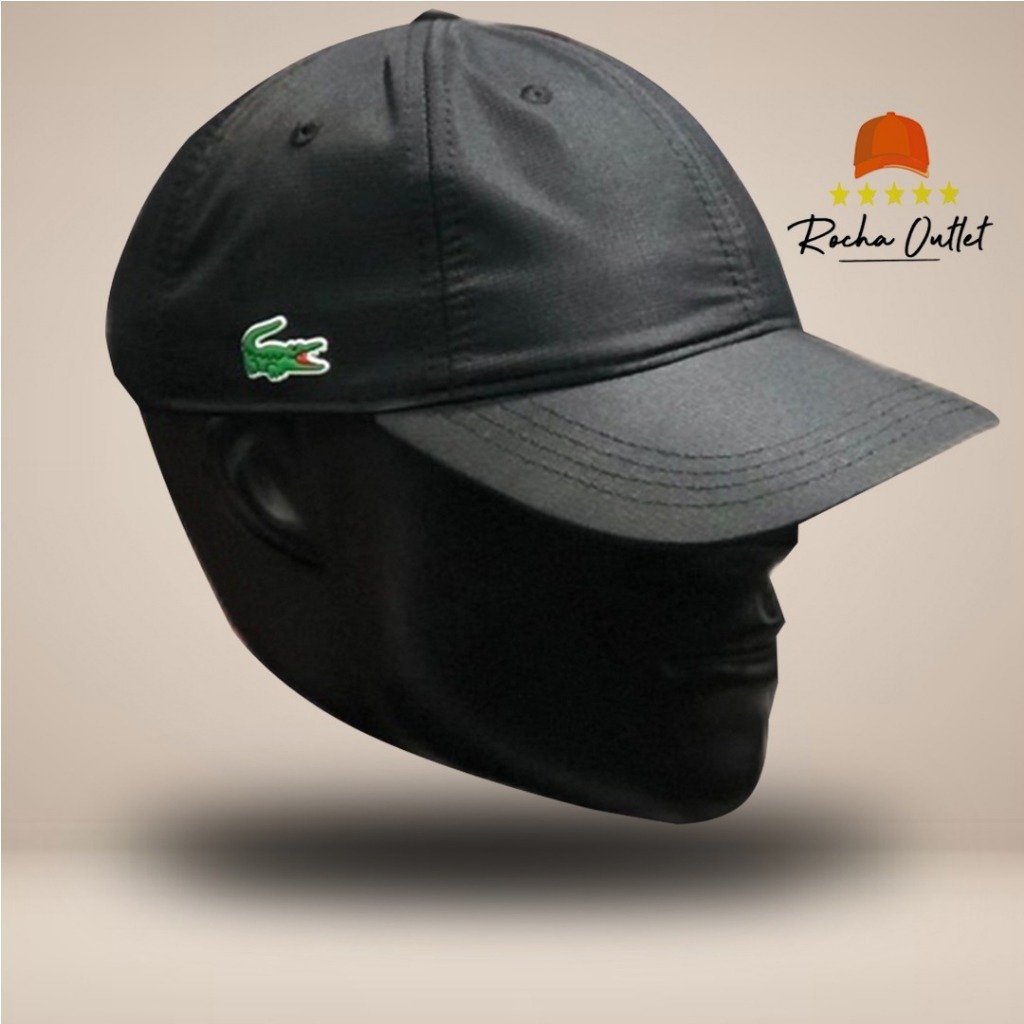 Boné lacoste sport mini croc lateral, fitao de tecido fecho personalizado aba curva