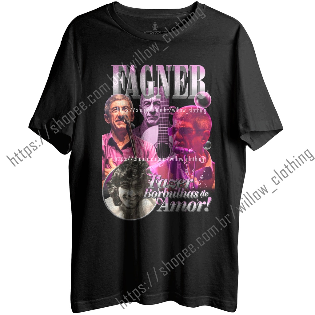 Camiseta Algodão Unissex T shirt Graphic Tees Cantor Fagner Fazer Borbulhas de Amor