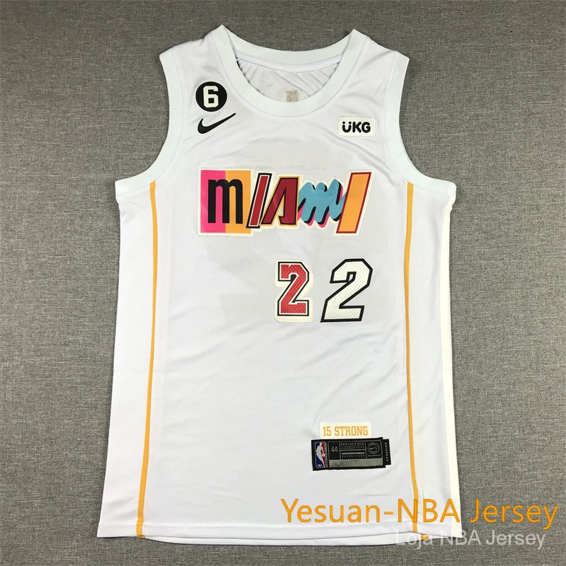 Camisa Mordomo Jimmy Heat De Miami Para Homens # 22 Basquetebol Branco regatta nba Jersey