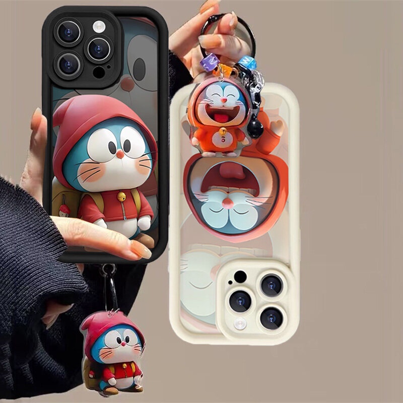 Desenho Animado Doraemon Ding Dang Cat Keychain Pendant Phone Case For Redmi 9A 9C 9i 10 10C 12C 12 A1 4G A2 Caixa Olhos De Anjo Capa De Silicone TPU Macia À Prova De Choque