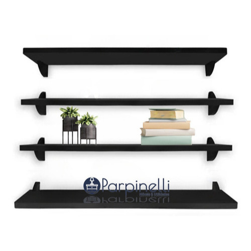 Kit Jogo 4 Prateleiras De Livro De Parede MDP Preto 90 X 15