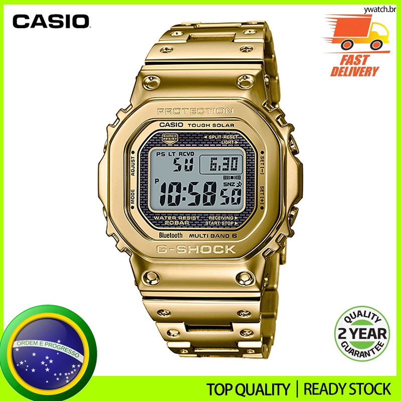 Relógio Casio G-SHOCK Masculino Ouro Prata GMWB5000 Pequeno Quadrado À Prova D'água Esportivo Led Light Display Watch