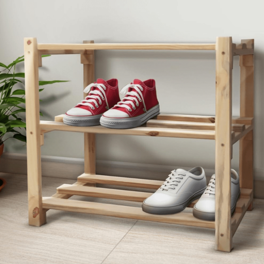 Sapateira Estante Casal 3 Prateleiras Minimalista Madeira Pinus Reflorestada