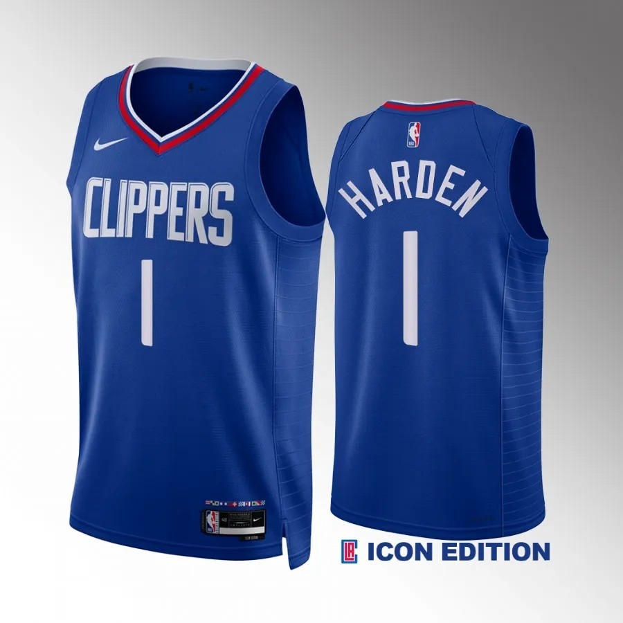 2023-24 Clippers Masculinos # 1 James Harden Jersey Edição Ícone Blue Swingman