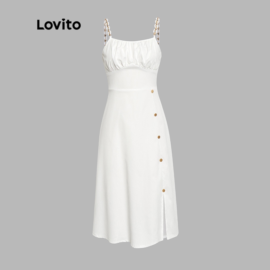 Lovito LIFE IS A PARTY Elegante Vestido Feminino De Corrente De Botão Liso L40EE043 (Branco)