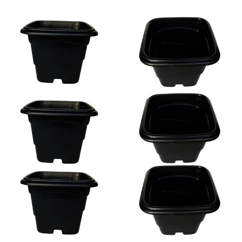 Kit 6 Vaso 10 Litros Quadrado Preto Reforçado