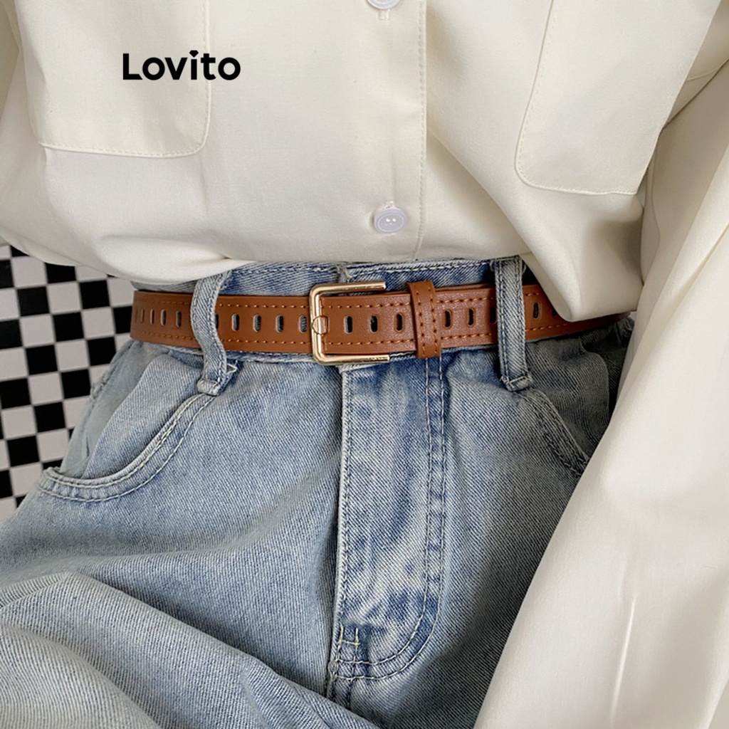 Lovito Cinto Básico Liso Casual Para Mulheres L60AD098 (Café/Marrom/Preto)