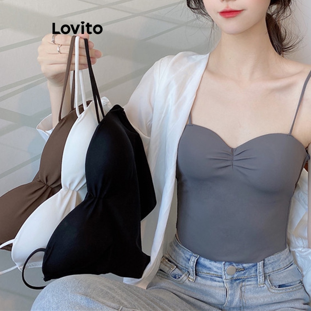 Lovito Bralette Básico Liso Casual Para Mulheres LNA27194 (Marrom/Cinza/Preto)