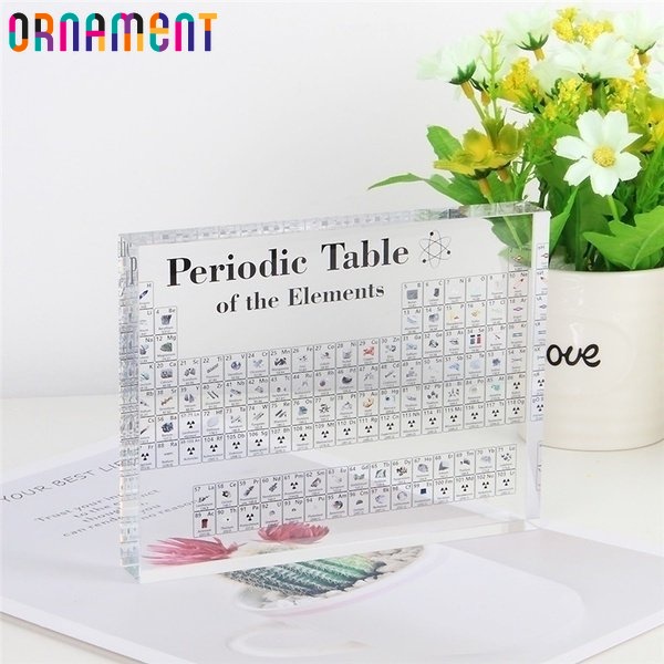 Tabela periódica em acrílico com elementos reais para crianças, presentes de aniversário o dia da escola, elemento químico, decoração do lar