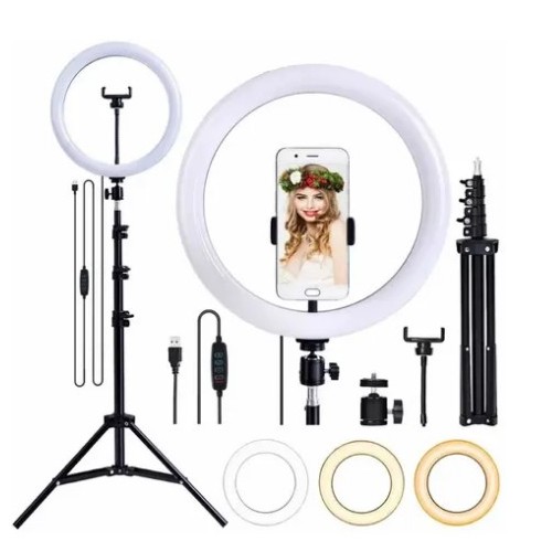 KIT COMPLETO RING LIGHT ILUMINADOR LUZ DE LED / SELF 26CM / 10 POLEGADAS COL TRIPE 2M IDEAL PARA FOTO / VÍDEO