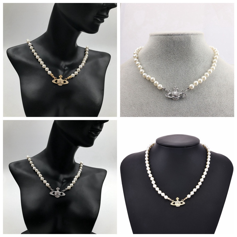 Westwood Vivienne Planet Retro Pearl Women's Short Wedding Jewelry Necklace Ins Choker Chain Luxury Birthday Gift
