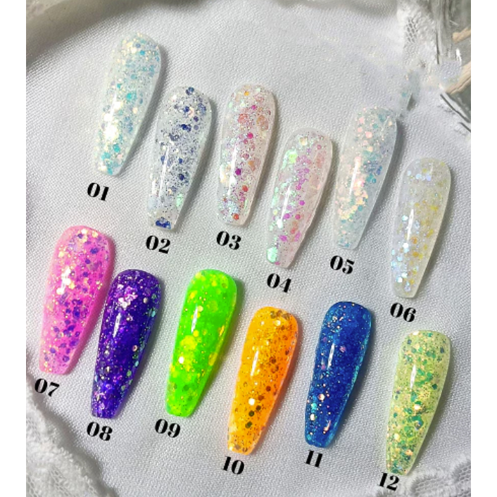Kit 12 Glitter Flocado COM Glitter Fino Para Unhas Lantejoulas Encapsulada Nails Decoração