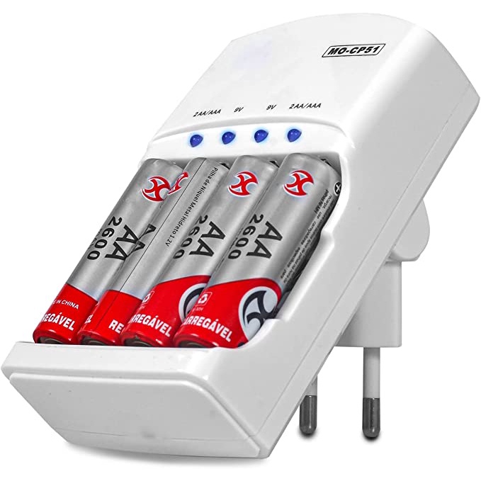 Carregador De Pilha AA x AAA e Bateria 9V Mox Com e Sem 4 Pilhas Aa 2600mah Recarregável