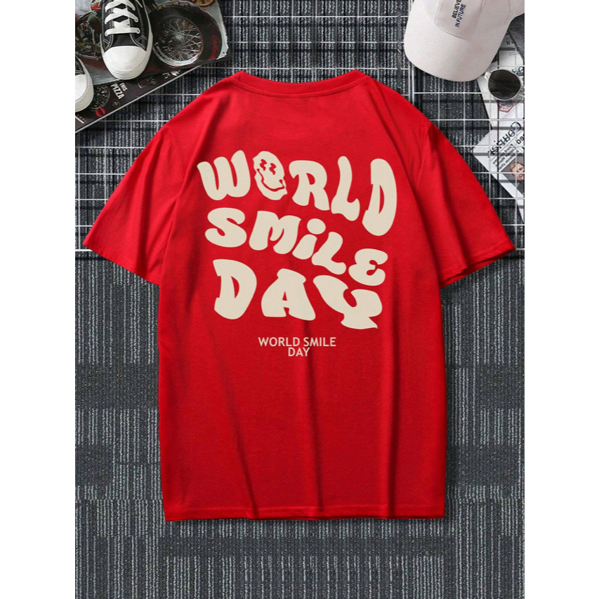 Camiseta Manga Curta Oversized Estampa Emoji Frente Costa World Smile Day Bordado Feliz Alegre Tradução Dia Mundial Do Sorriso T-shirt Aesthetic Skate Masculina Longline Homem Streetwear Blusa Larga Unissex
