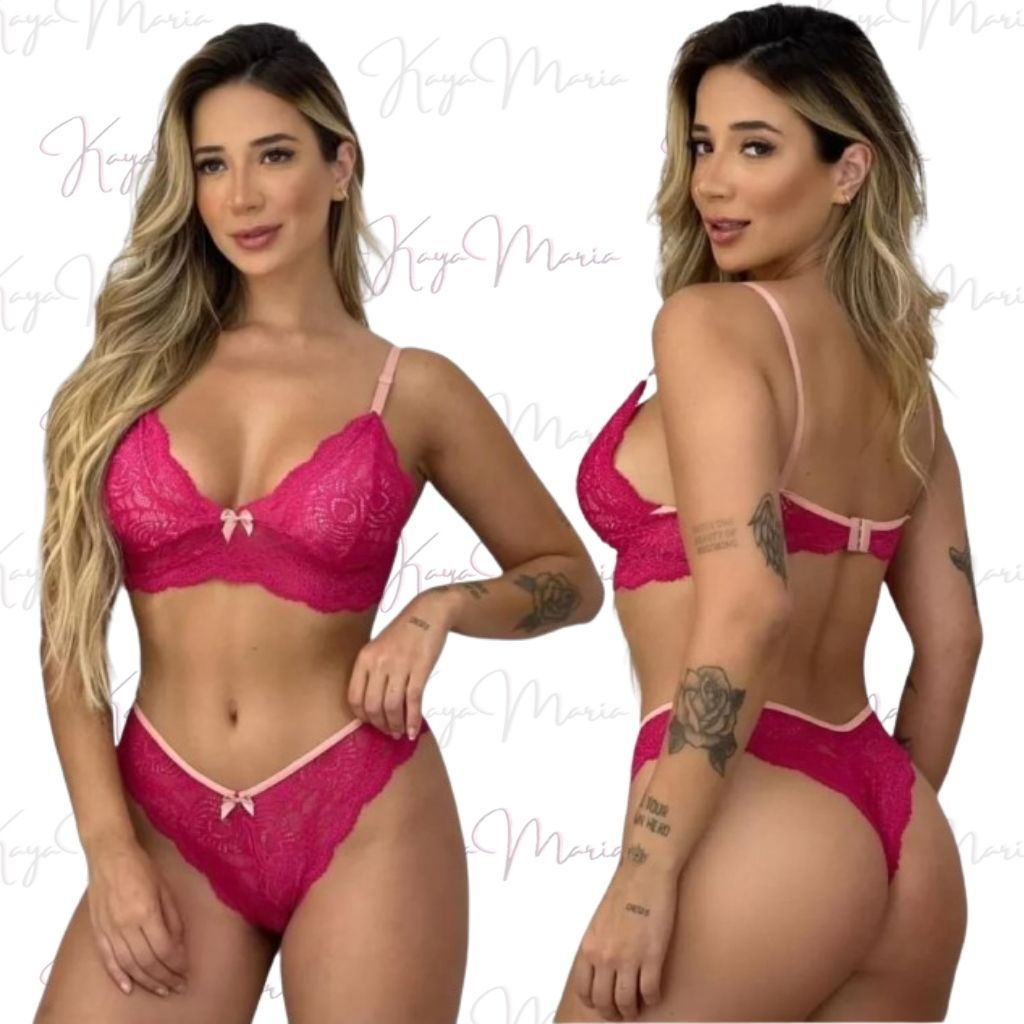Kit 2 Conjunto de lingerie sexy em renda sutiã sem bojo e calcinha com regulagem NOVIDADE