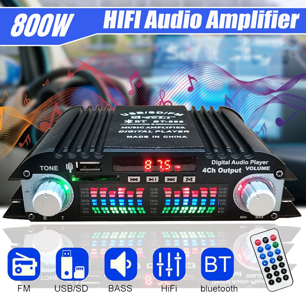 12 V/110V/220V 800W Mini Bluetooth HiFi Amplificadores de Potência de Áudio Automotivo Carro Estéreo Amplificador 4 Canais Carro Casa Digital Som Display
