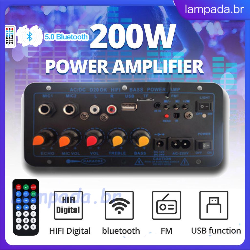 Placa De Amplificador Estéreo Digital Bluetooth 120/200w Ac 220v 12v 24v Subwoofer Amplificadores De Karaokê Para Alto-falante De 8-12 Polegadas Lampada_br