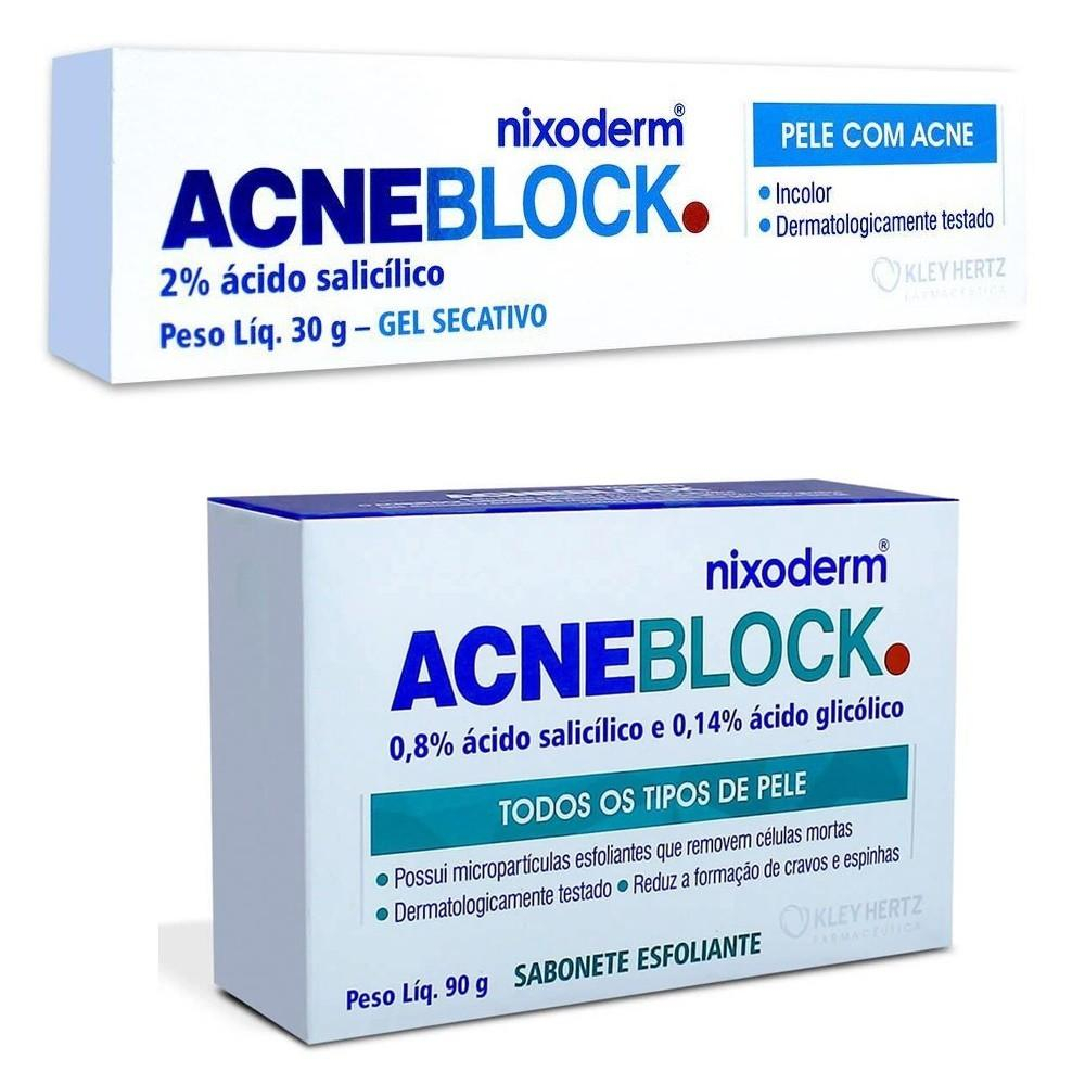 GEL SECATIVO 30G E SABONETE ESFOLIANTE 90G ACNEBLOCK