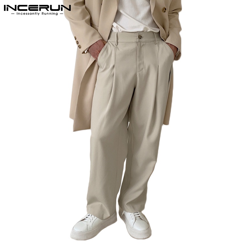 Incerun Calça Comprida Masculina Folgada Em Linha Reta Com Cinto De Cor Lisa
