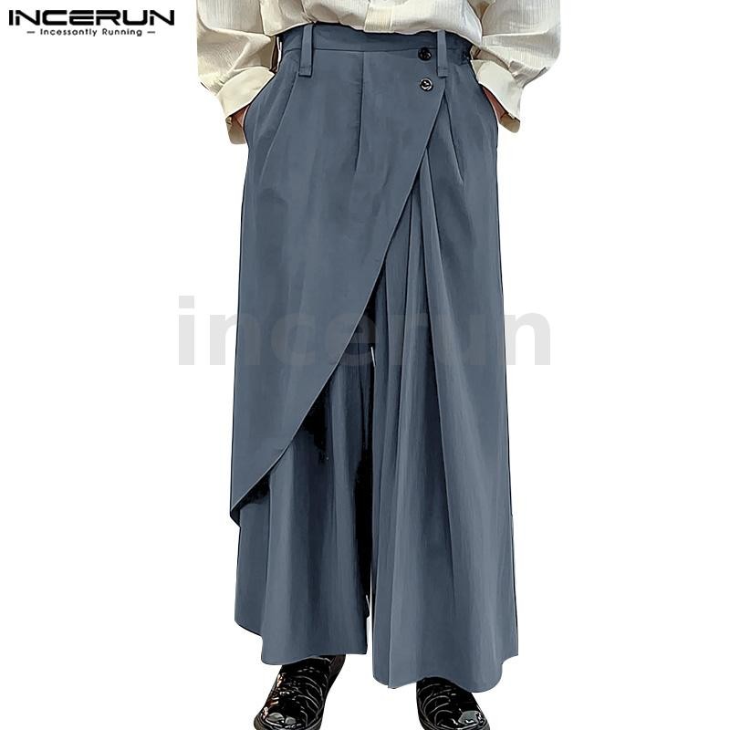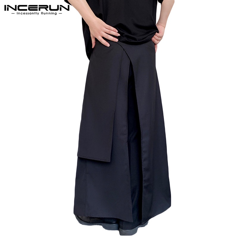 INCERUN Saia Masculina Multicamadas Calça De Cor Sólida Casual
