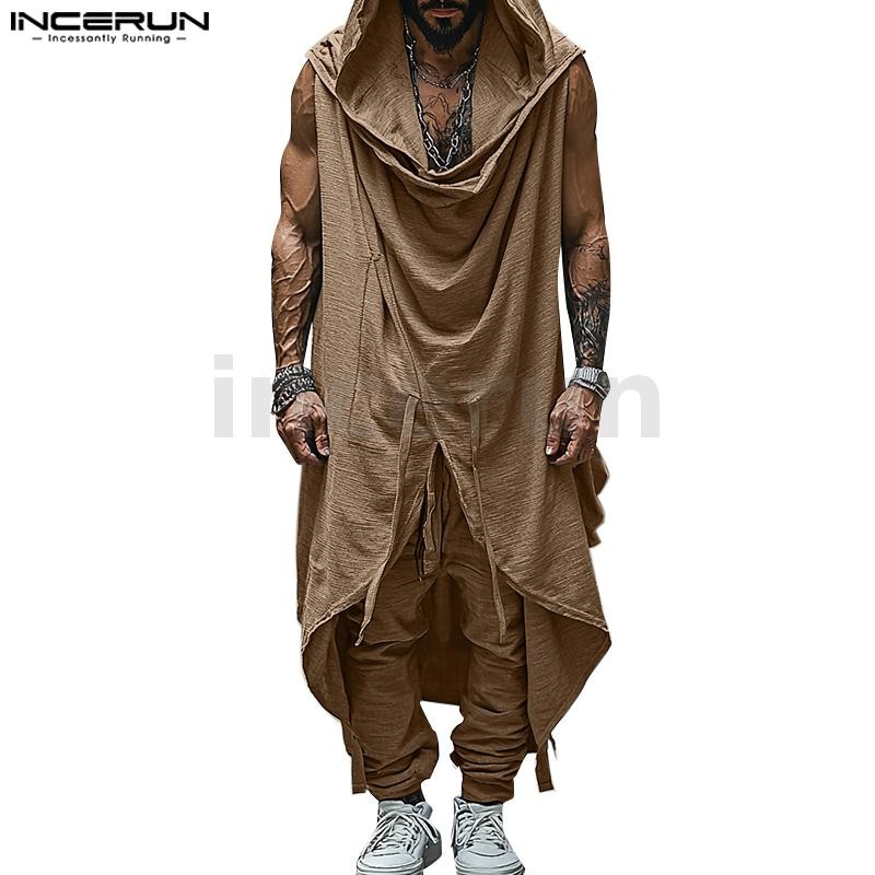 INCERUN Capas Sem Mangas De Cor Sólida Européia Para Homens De Design Com Capuz Curto