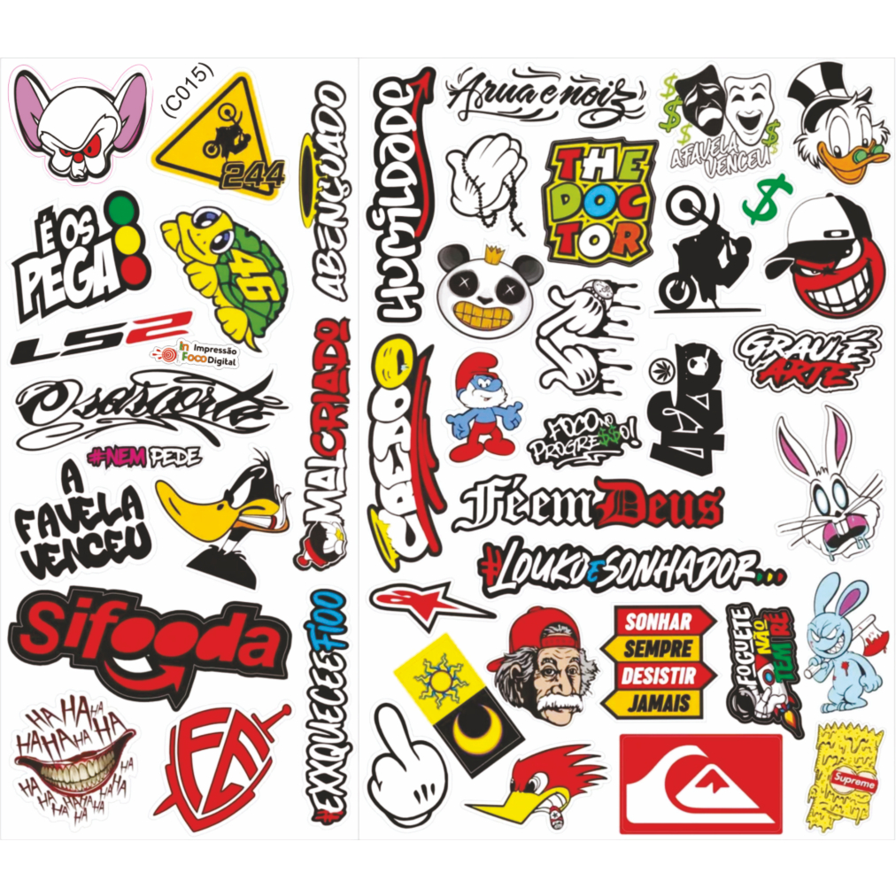 Adesivo Para Moto Bike Capacete Carro - Kit Adesivos 45 Unidades Diferente Boa Resolução Super Cartela (C010)