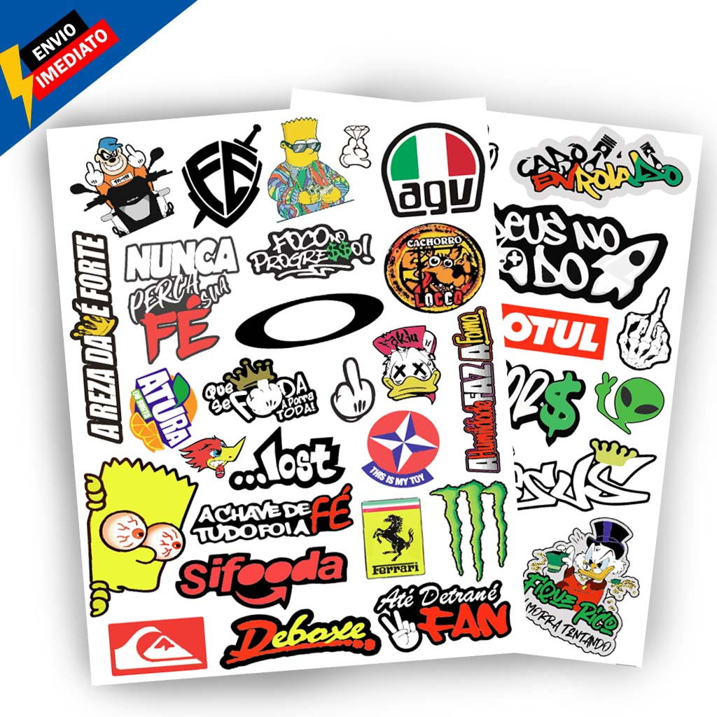 100 Adesivos Moto - Kit de 3 Cartelas de adesivos - Adesivo para Moto, Capacete, Bike, Carro