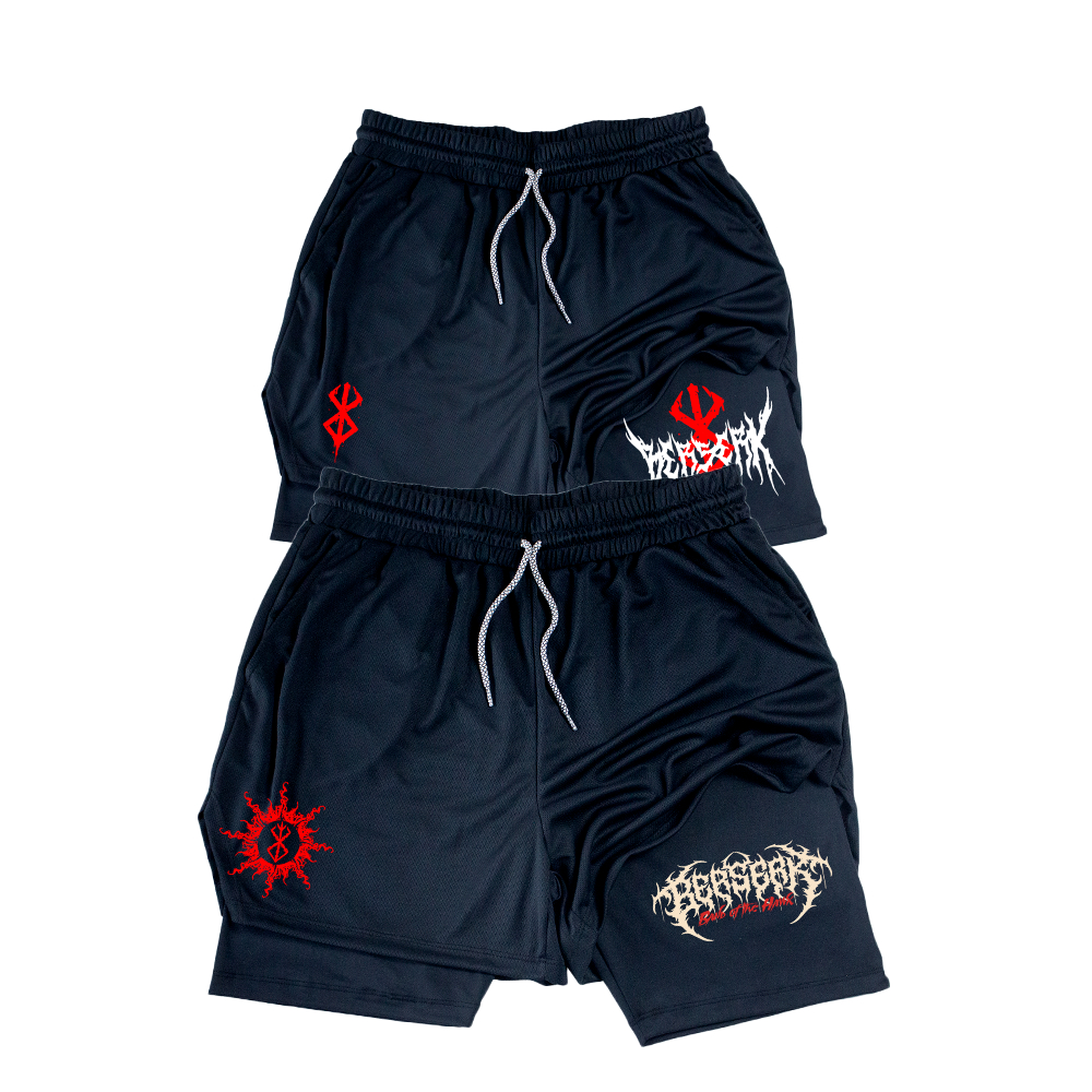Kit 2 Shorts Dry-Fit Compressão 2 em 1 Esportivo Treino Futebol Academia Anime Bersek Manga