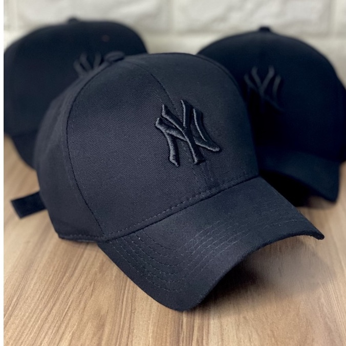 Boné Aba Curva NY New York Yankes Era Masculino e Feminino Preto com Preto