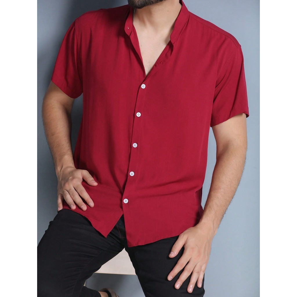 Camisa manga curta social masculina de linho com gola padre - camisa para verão - camisa fresca - moda praia