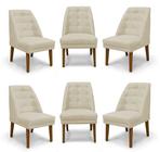 Kit 6 Cadeiras de Jantar Aurora Base Madeira Maciça Estofada Suede Bege