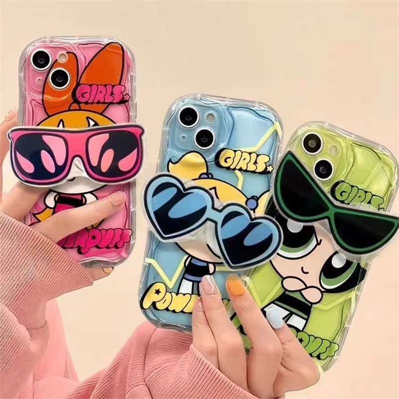 Estojo De Telefone Para Samsung Galaxy A55 A54 5G A04 A04E A13 A14 A22 A23 A24 A33 A34 A35 A52 A52S A53 A32 4G A15 A25 INS 3D Lovely Powerpuff Girls Suporte De Óculos De Sol Com Cobertura Total À Prova De Choque