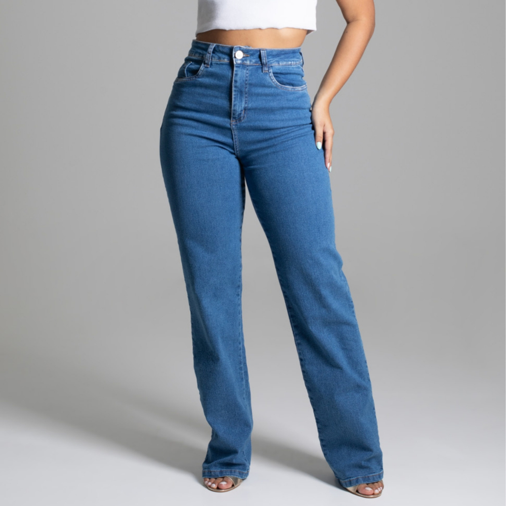 Calça Wide Leg Sawary Jeans Original Elastano Lycra Cintura Alta Moda Feminina Roupas Femininas