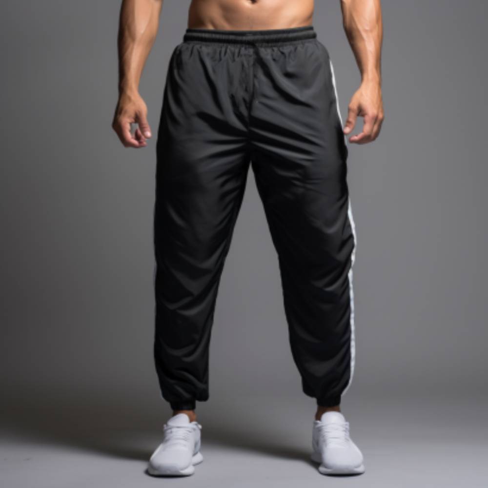 Calça de Academia Preta com Listra Branca Elastic com Elastano Roupas Moda Masculino
